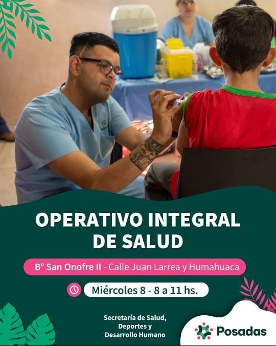 La Municipalidad de Posadas llevará adelante un nuevo Operativo Integral de Salud este miércoles 8 de octubre, de 8:00 a 11:00 horas, en el barrio San Onofre II, sobre calle Juan Larrea y Humahuaca.